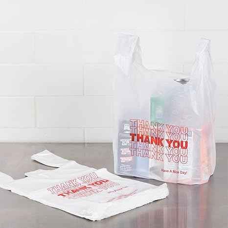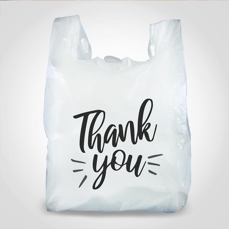 ถุงช้อปปิ้งซุปเปอร์มาร์เก็ตแบบเสื้อยืดพลาสติก PE รีไซเคิล ผลิตโดยบริษัท AAB HARVEST สามารถนำกลับมาใช้ใหม่ได้