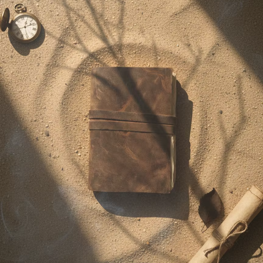 สมุดบันทึกหนังแท้ทำมือ AAN Overseas Ventures พร้อมสายรัดแบบโบราณ ขนาด 7x5 นิ้ว เหมาะสำหรับการเดินทาง