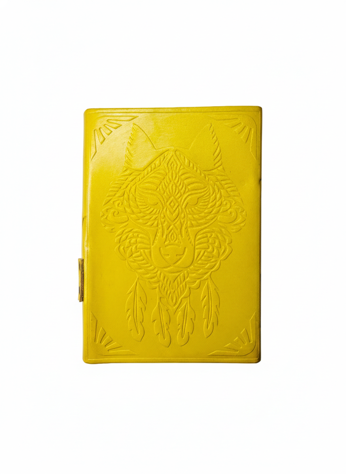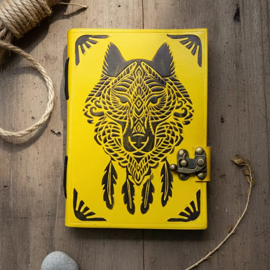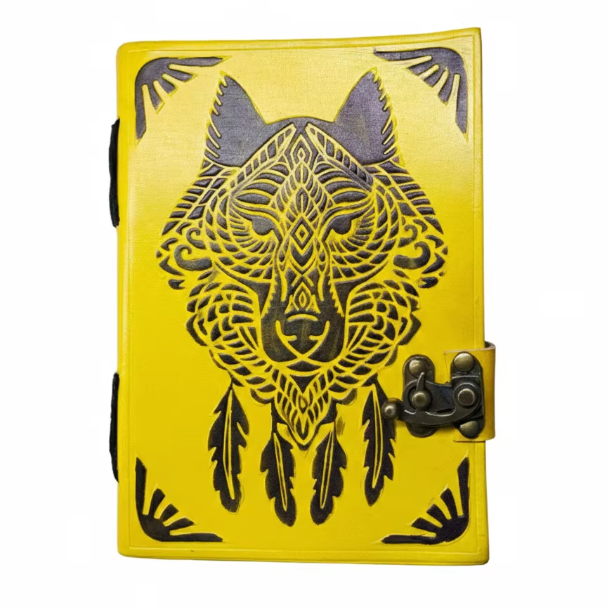 สมุดบันทึกหนังแท้ลายหมาป่าโบราณพรีเมียม AAN Overseas Ventures หลากสี พร้อมตัวล็อคโลหะ ของที่ระลึกทำมือ