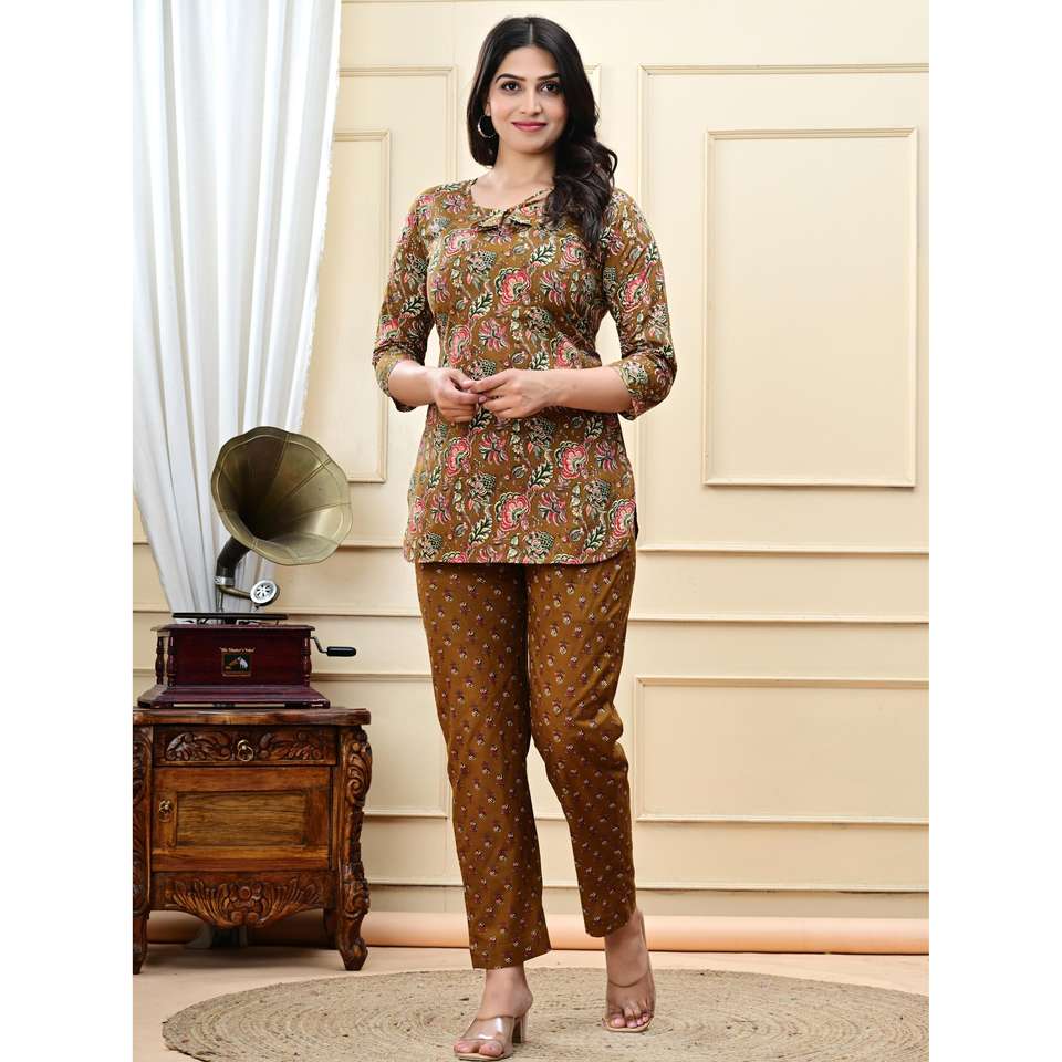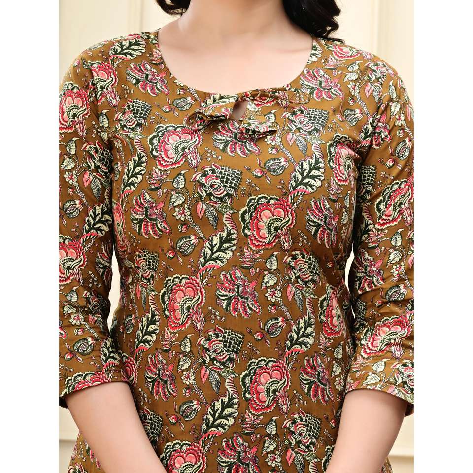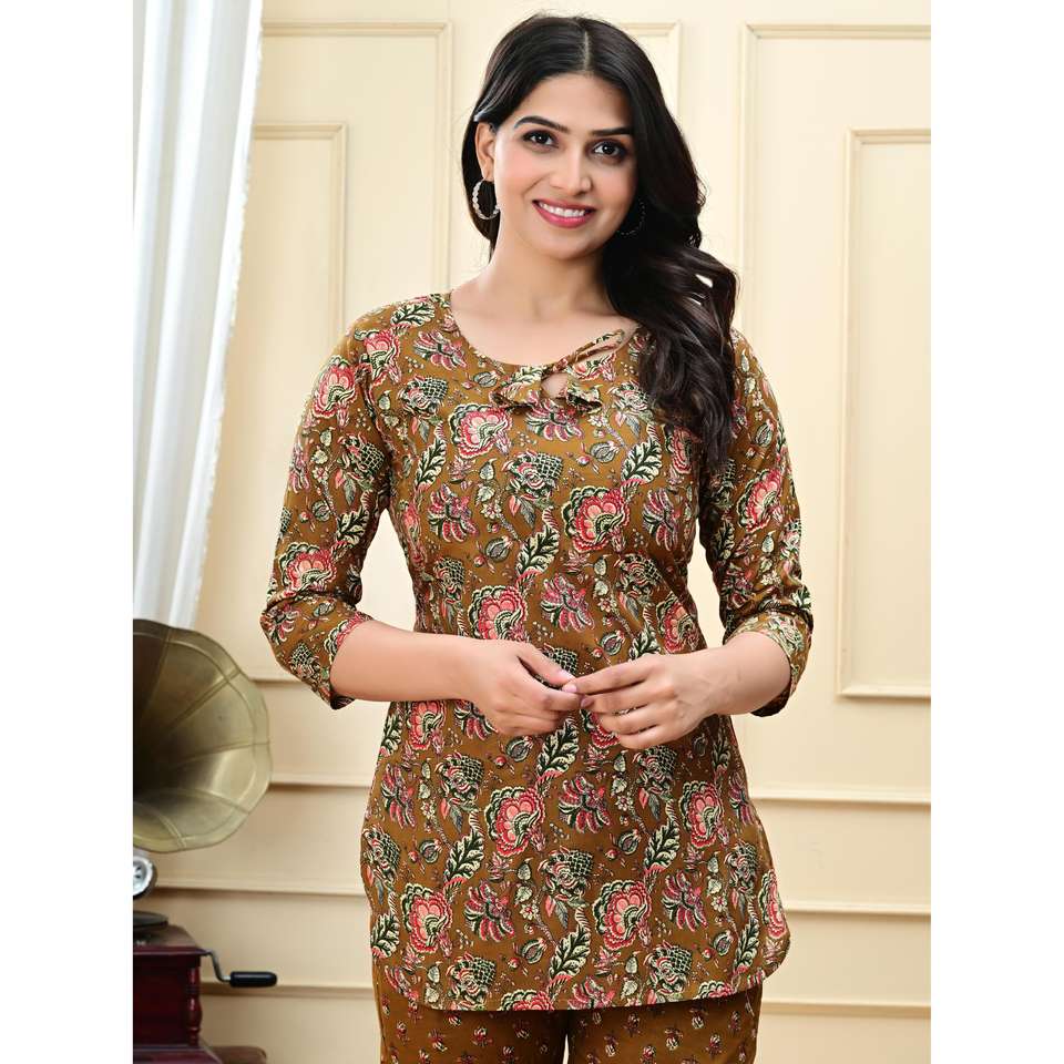 AARTI FASHION CREPE SALWAR SUIT สำหรับผู้หญิง ชุดลำลองสวมใส่ทุกวัน ระบายอากาศได้ดี พิมพ์ลาย คอกลม แขนสามส่วน ทุกฤดูกาล