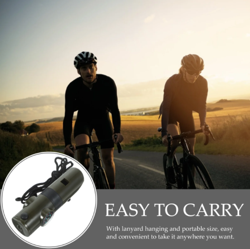 พลาสติก ABS แข็ง + ชิ้นส่วนโลหะ นกหวีดอเนกประสงค์เจ็ดในหนึ่งเดียวสำหรับการช่วยเหลือและส่งสัญญาณชีวิต พร้อมเข็มทิศแบบเติมน้ำ