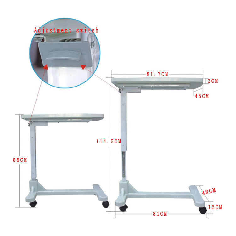 โต๊ะพยาบาลเคลื่อนย้ายได้โต๊ะทานอาหารข้างเตียงเคลื่อนย้ายได้ทำจากวัสดุ ABS ใช้ในห้องครัว