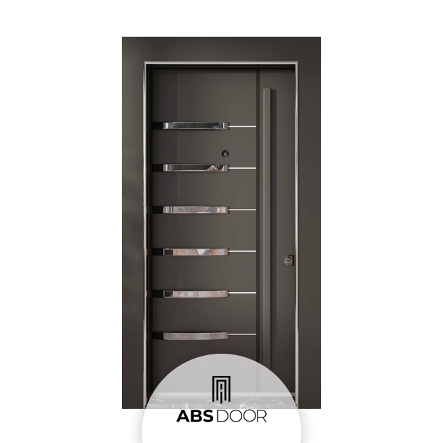 ประตูเหล็กสแตนเลส ABSDOOR รุ่น DARK KNIGHT ดีไซน์สวยงาม แข็งแรง ทนทาน สำหรับใช้งานเชิงพาณิชย์ พร้อมฉนวนกันความร้อน เหมาะสำหรับทางเข้าภายในอาคาร อพาร์ทเมนต์ และโรงแรม