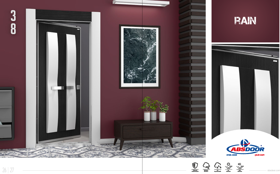 ประตูทางเข้าภายในบ้าน ABSDOOR RAIN ดีไซน์หรูหราทันสมัย พร้อมฉนวนกันความร้อน แข็งแรงทนทาน ผลิตจากเหล็ก เหมาะสำหรับอพาร์ทเมนท์ วิลล่า และโรงแรม