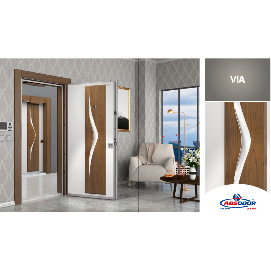 ประตูเหล็ก ABSDOOR VIA รุ่น High Security ดีไซน์เรียบหรู แข็งแรง ทนทาน เหมาะสำหรับอพาร์ทเมนต์ วิลล่า ผลิตจากโรงงานโดยตรง ผิวสำเร็จรูป