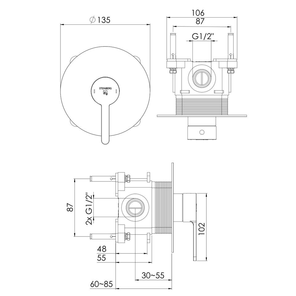 ชุดฝักบัวอาบน้ำสีดำด้าน, ดีไซน์แบบก้านโยกเดียวพร้อมประกอบ3ชิ้น