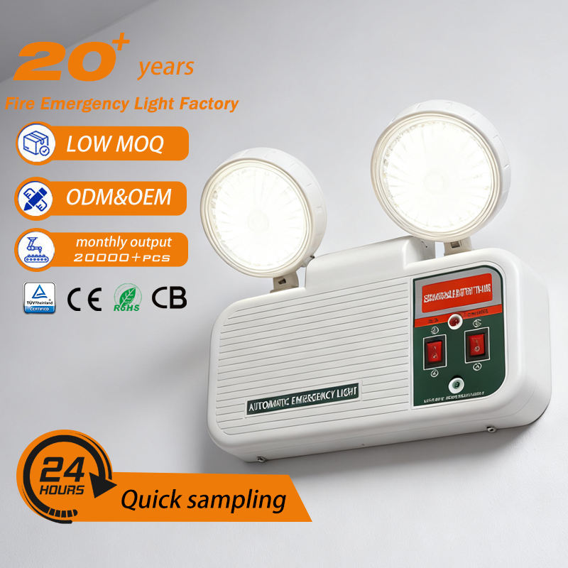 ไฟฉุกเฉินแบบสองหัว LED คุณภาพสูง สำหรับใช้ในอาคาร โรงเรียน และเชิงพาณิชย์ ใช้ไฟ AC 85-265V ความจุแบตเตอรี่ 1800mah ชาร์จไฟได้ พร้อมระบบเปิด-ปิดอัตโนมัติ