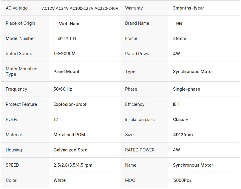 คำอธิบาย:มอเตอร์ซิงโครนัสขนาดเล็กที่มีความเร็วคงที่เสียงรบกวนต่ำขนาดกะทัดรัด