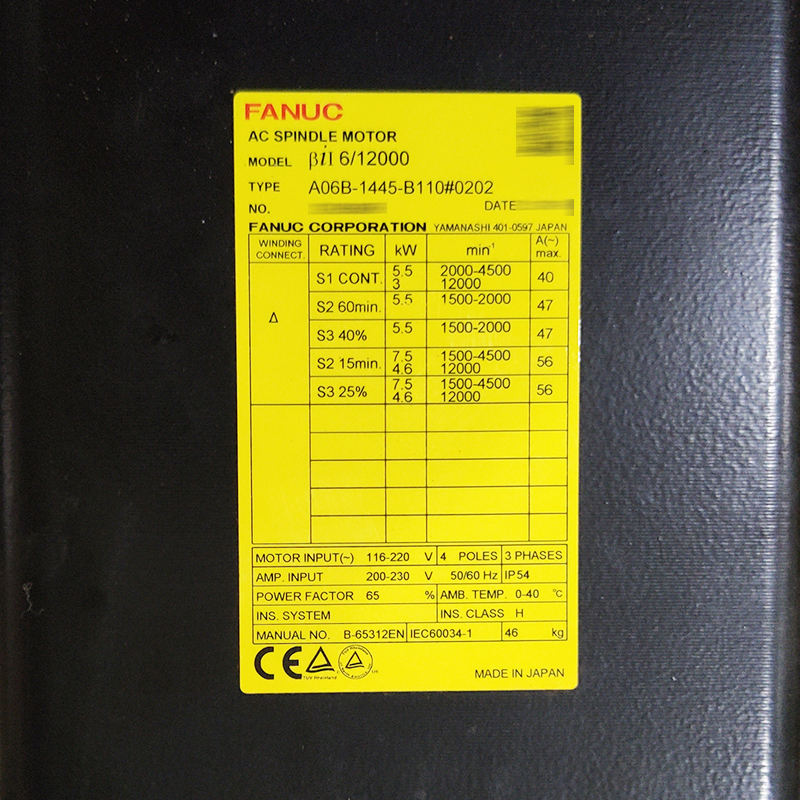 ชื่อผลิตภัณฑ์:A06B-1445-B110 #0202มอเตอร์แกนหมุน AC Fanuc ของใหม่ดั้งเดิม