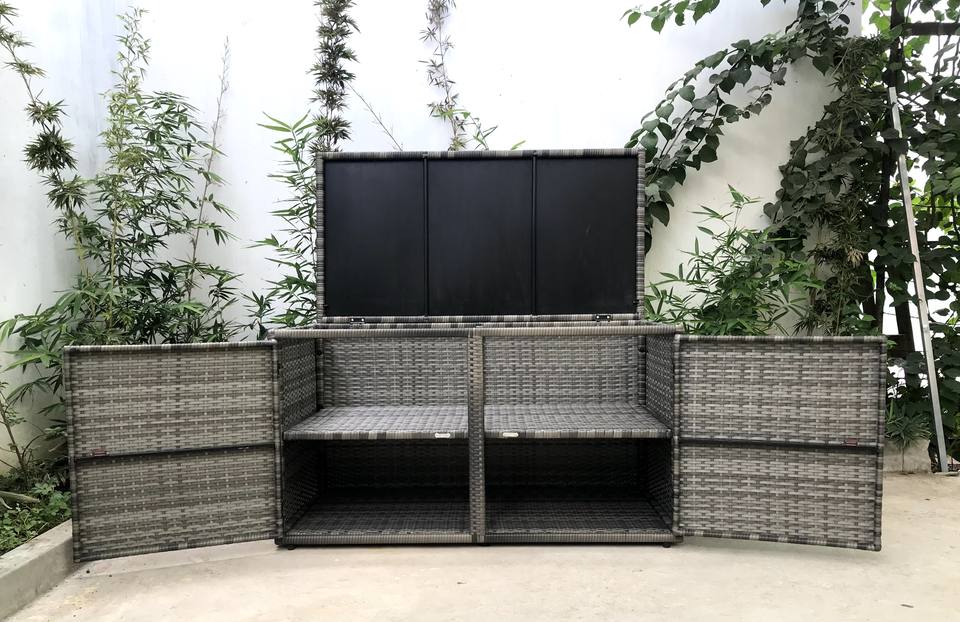 AC00031ชุดสวนกลางแจ้งที่ทันสมัยกล่องเก็บของสีเทาทุกสภาพอากาศกรอบอลูมิเนียมหวายทำจากเวียดนามสำหรับกลางแจ้ง