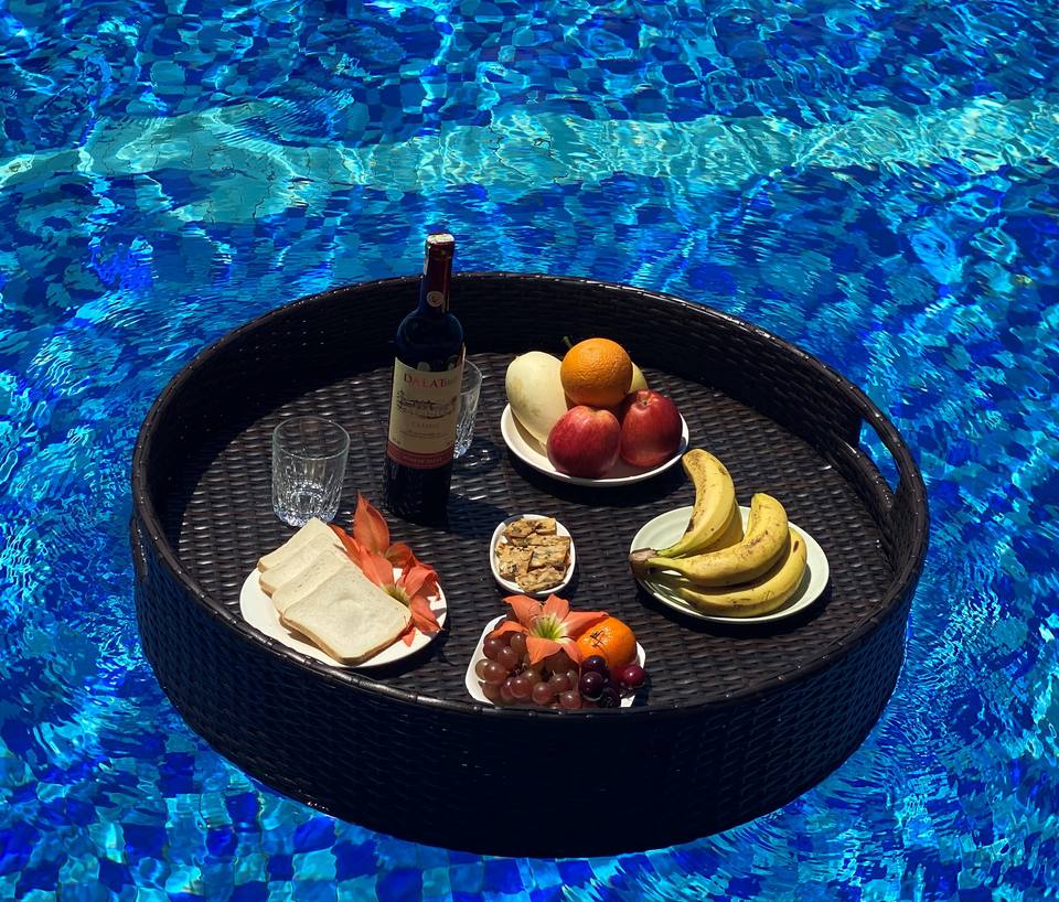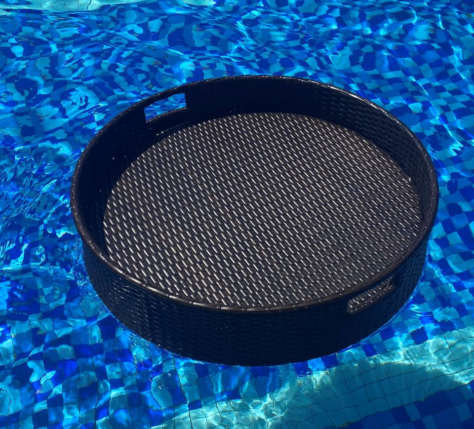 ถาดชา AC00033 ถาดอาหารเช้าและถาดเสิร์ฟทรงกลมหรูหรา ทำจากโลหะ สำหรับโรงแรมและวิลล่า ใช้ริมสระน้ำได้
