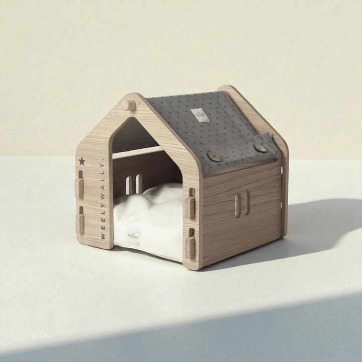 บ้านสัตว์เลี้ยงในร่มแบบยึดติดกับ AC07ด้วยกรอบไม้ทึบและดีไซน์ด้านหน้าแบบเปิดสำหรับแมวและสุนัขเวียดนาม