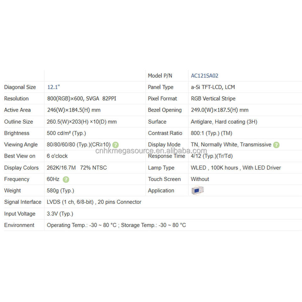 AC121SA02หน้าจอ12.1นิ้ว800*600จอแสดงผล LCD AC121SA02แผง LCD