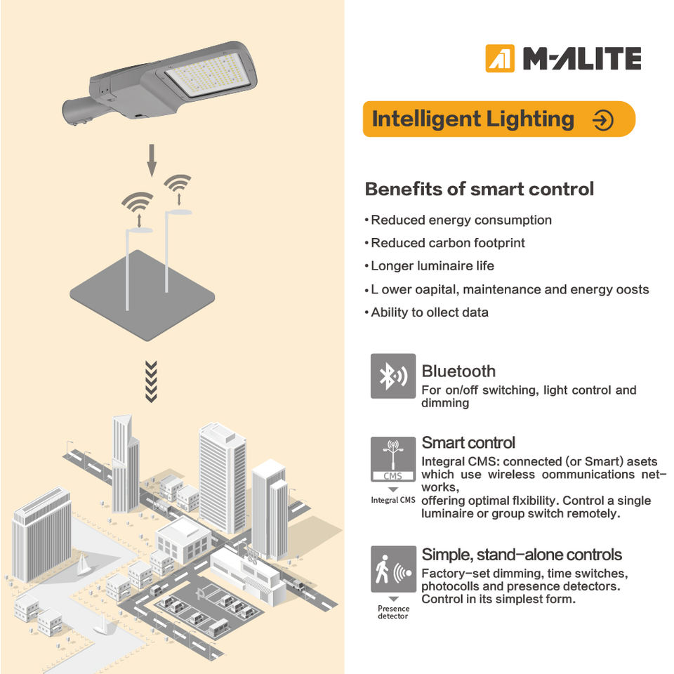 ไฟถนน LED ควบคุมอัจฉริยะแบบไม่ต้องใช้เครื่องมือ รองรับแรงดันไฟฟ้า AC85-480V ระดับ Class I/II พร้อมอุปกรณ์ป้องกันไฟกระชาก (SPD) ระดับ IP66/67 สำหรับถนนและสะพาน