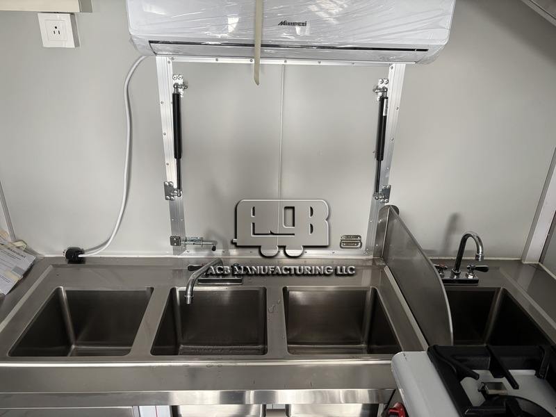 รถพ่วงขายอาหาร ACB พร้อมอุปกรณ์ครบครัน ครัวครบชุดสำหรับขายขนม ไอศกรีม โครงสร้างสแตนเลสและอะลูมิเนียม ป้องกันสนิม