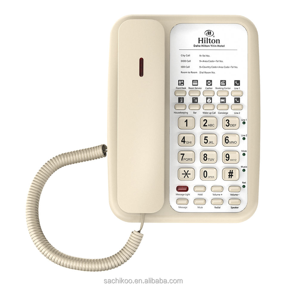 โทรศัพท์สำหรับโรงแรมโทรศัพท์แบบมีปุ่มหมุนเร็ว8ปุ่มสำหรับห้องรับรองแขก ACE-8902IP ปรับแต่งโลโก้ได้