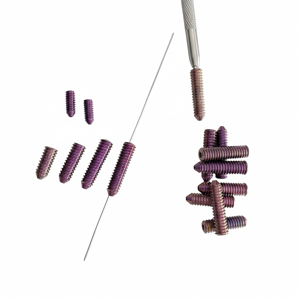 สกรู ACL (Interference) เส้นผ่านศูนย์กลาง: 9 มม. (ความยาว 20 ถึง 35 มม.) จำนวน 21 ชิ้น (ไทเทเนียมเกรด 5)