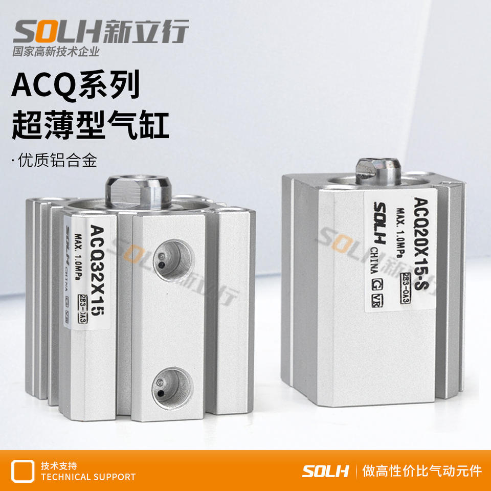 กระบอกลมแบบบาง ACQ แรงดันสูง ขนาด 12/16/20/25/32/40/50/63/80/100 สำหรับเครื่องจักร เชื่อมต่อแบบเกลียว โซลินอยด์