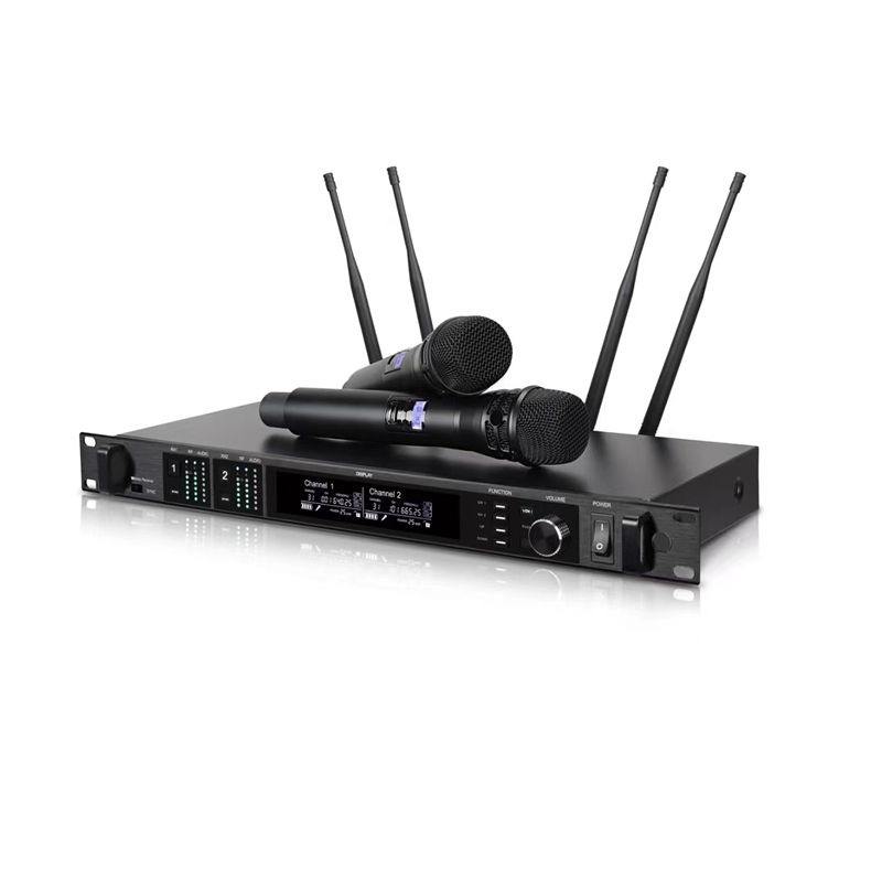 ไมโครโฟนโลหะ AD4D พร้อม Ksm8 สำหรับการแสดง 2 ช่องสัญญาณ UHF True Diversity ระบบไมโครโฟนไร้สายแบบพกพา AD4D สำหรับคาราโอเกะ