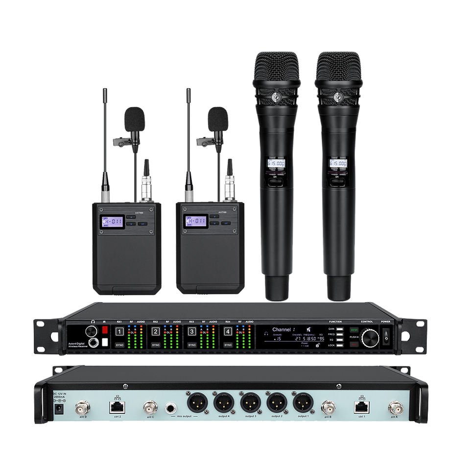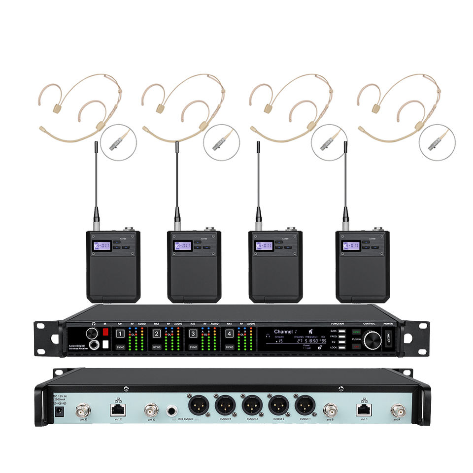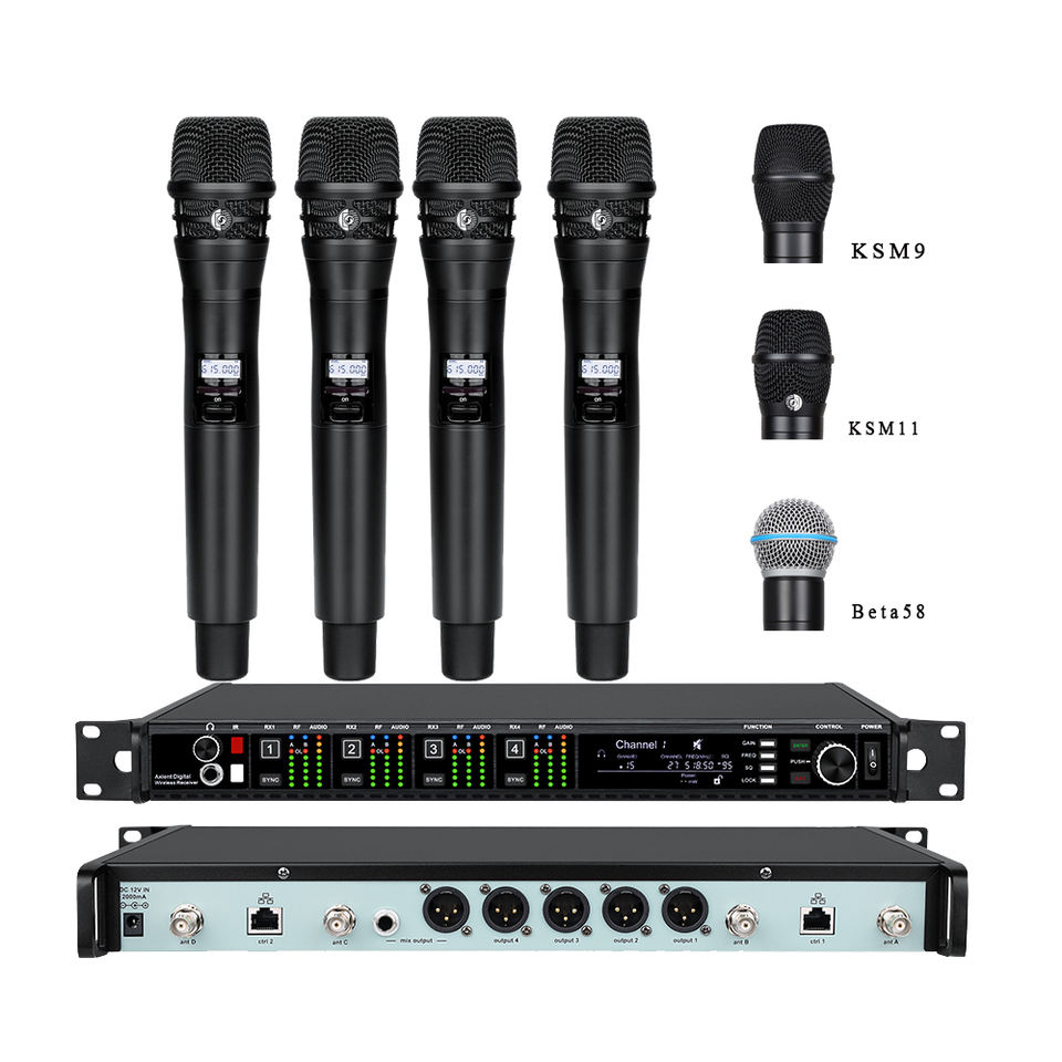 ไมโครโฟนไร้สายแบบหนีบปกเสื้อ/แบบคาดศีรษะ AD4Q ระดับมืออาชีพ 4 ช่องสัญญาณ UHF 470-940mhz ไมโครโฟนสำหรับสตูดิโอ สำหรับไมโครโฟน Shure