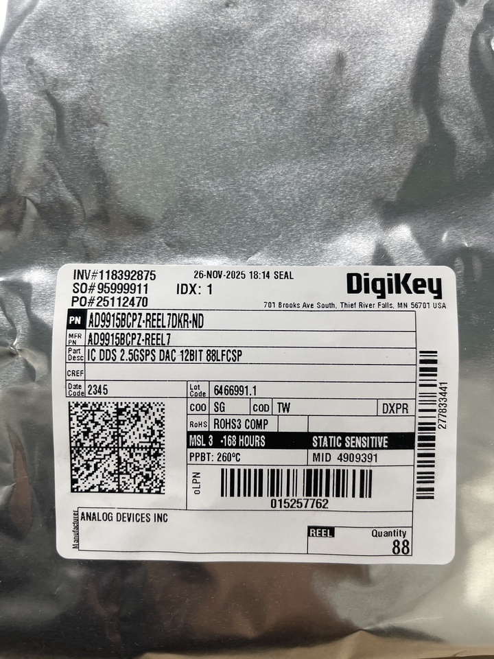 ไอซีเครื่องกำเนิดสัญญาณ DDS รุ่น AD9915BCPZ | เครื่องสังเคราะห์เสียงดิจิตอลโดยตรง 2.5GSPS | แพ็คเกจ LFCSP88 | 25+ ดีซี | อุปกรณ์อนาล็อก | แผงควบคุม