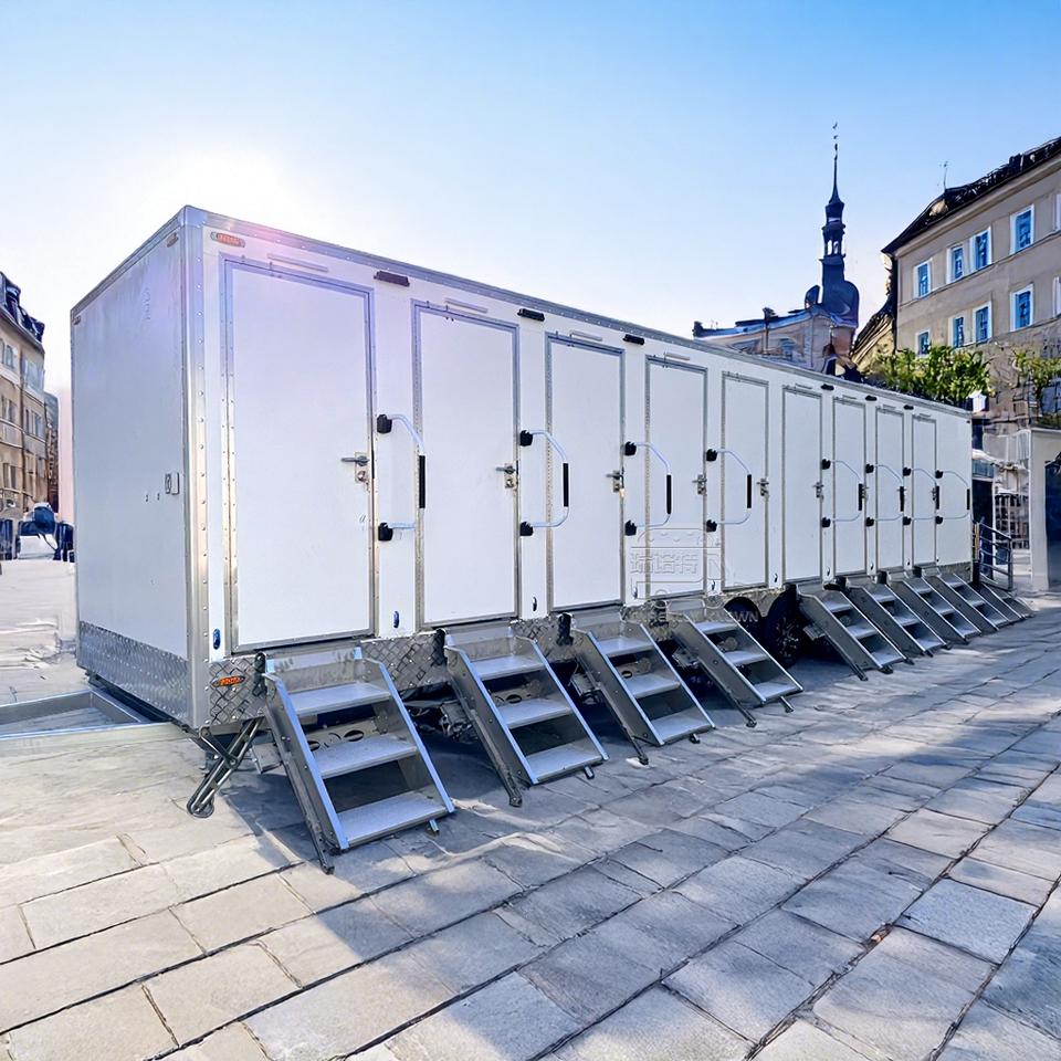 ห้องน้ำเคลื่อนที่สาธารณะแบบวีไอพี ADA สำหรับผู้พิการ 10 ห้อง แบบพกพา ติดตั้งบนรถพ่วง เป็นมิตรกับสิ่งแวดล้อม ทนทาน ผลิตจากเหล็ก