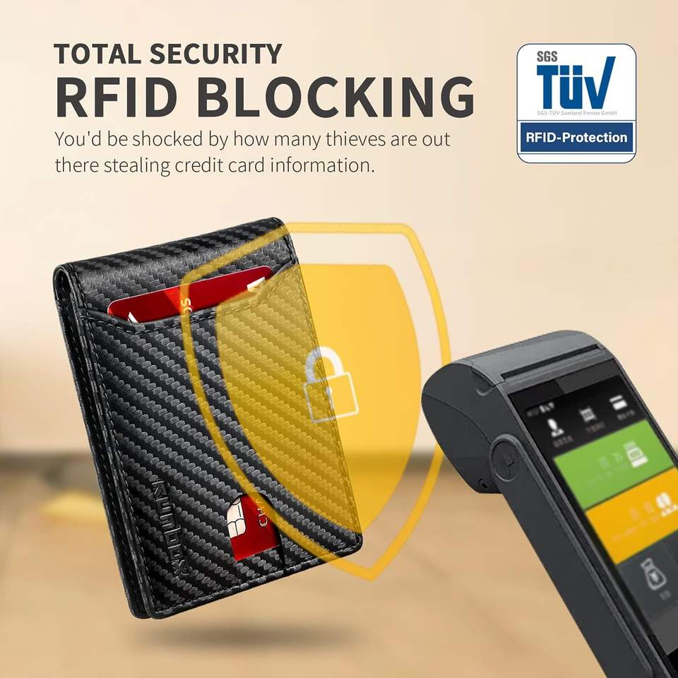 ADELE Men's Slim 11 Slots RFID Blocking Leather Wallet Minimalist Bifold Large Capacity Front Pocket Credit Card Holder Gift