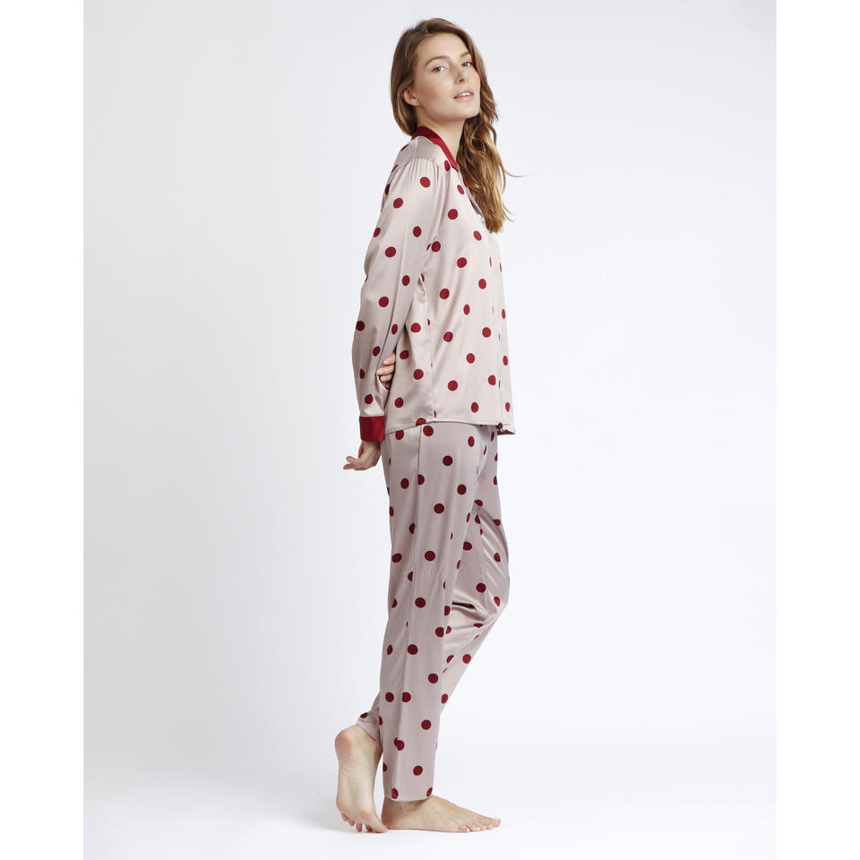 Admas ชุดนอนผ้าซาตินสไตล์คลาสสิกหรูหราสำหรับผู้หญิงเปิดด้านหน้าติดกระดุมติดโบว์เอวยางยืดคอปกจุดขนสัตว์