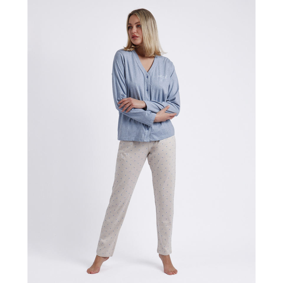 Admas ชุดนอนคลาสสิก abiertto Manga Larga คุณเพียงพอสำหรับผู้หญิงชุดนอนผ้าสแปนเด็กซ์เอวยางยืดระบายอากาศได้พิมพ์ลายสำหรับใช้ในบ้าน