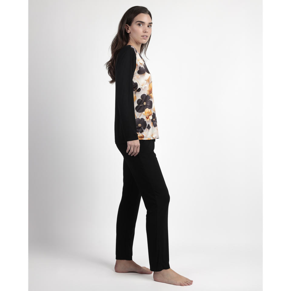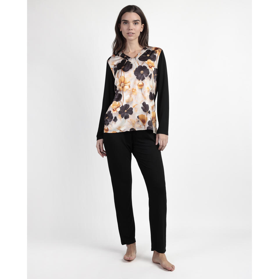 Admas ชุดนอนผู้หญิงหรูหราลายดอกไม้ผ้าสแปนเด็กซ์วัสดุยืดได้ปิดกระดุมสำหรับใส่อยู่บ้านในฤดูหนาวระบายอากาศได้ดีหรูหรา