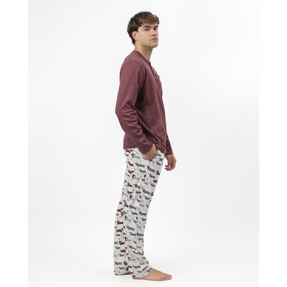Admas ชุดนอนผู้ชายแขนยาวพิมพ์ลายสุนัขสวมใส่สบาย