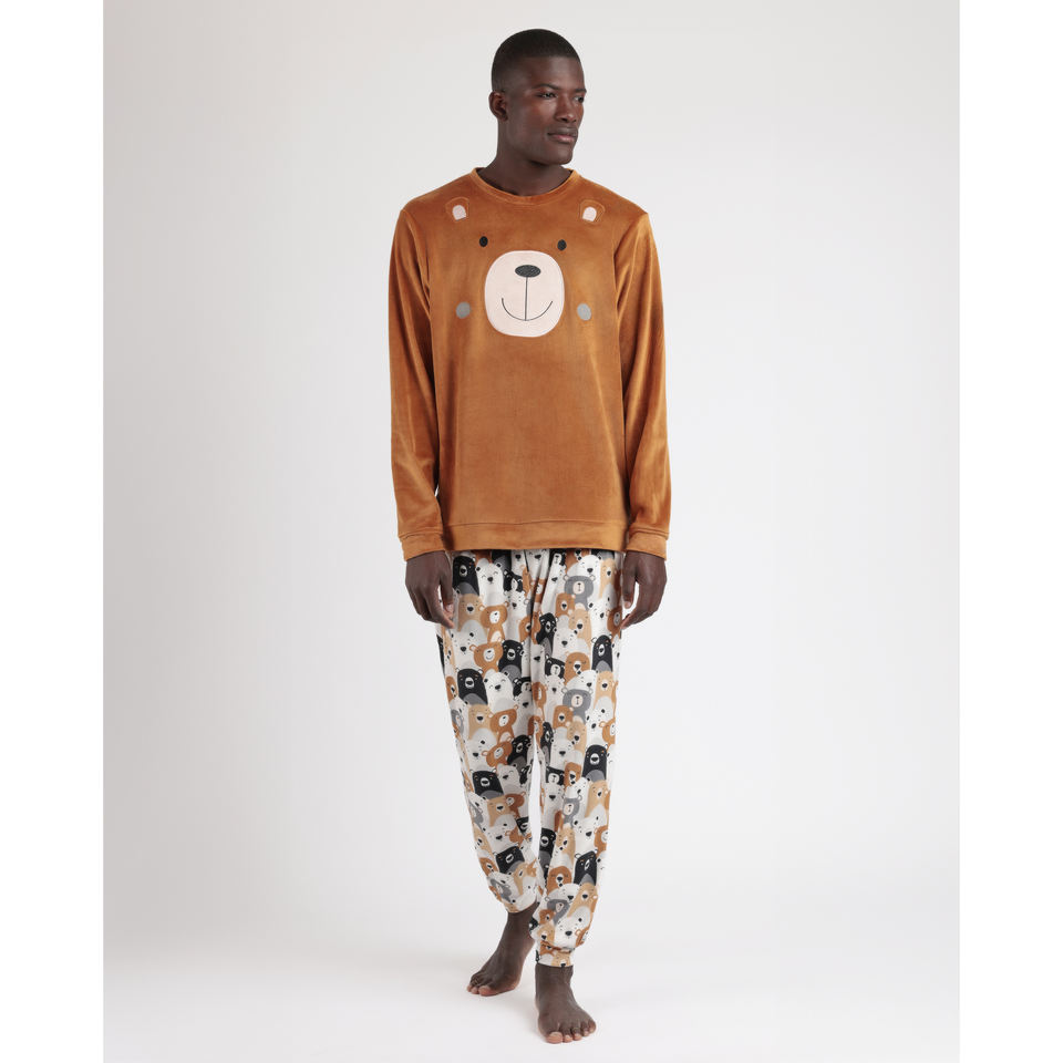 ชุดนอนผู้ชาย ADMAS ผ้ากำมะหยี่ลายหมีครอบครัว แขนยาว ชุดนอนลายหมีครอบครัวสำหรับผู้ชาย
