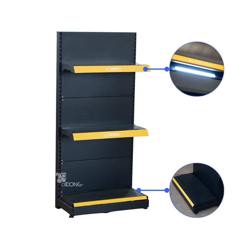Adong ชั้นวางของในซูเปอร์มาร์เก็ตสองด้านสำหรับงานหนัก A52สินค้า OEM/ODM สำหรับร้านค้าโลหะแสดงคุณสมบัติด้านเดียวตามสั่ง