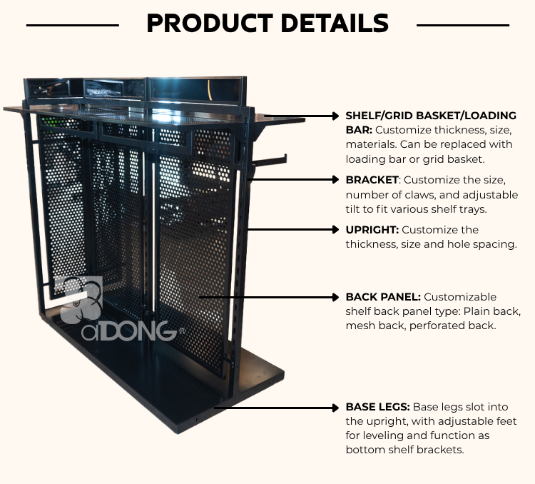 Adong A39พรีเมี่ยมเคาน์เตอร์จอแสดงผลสองด้านที่ทันสมัยโลหะหนักบูติกที่มีคุณสมบัติถอดออกได้ผู้ผลิตในเวียดนาม