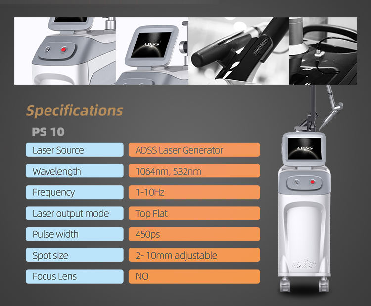 เครื่องลบรอยสักเลเซอร์ Picosecond เครื่องเลเซอร์กำจัดรอยสักพลังงานสูง