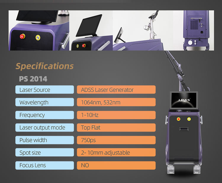 เลเซอร์พิโคเซคันด์ ADSS 750ps สำหรับลบรอยสักทุกสี กำจัดเม็ดสี