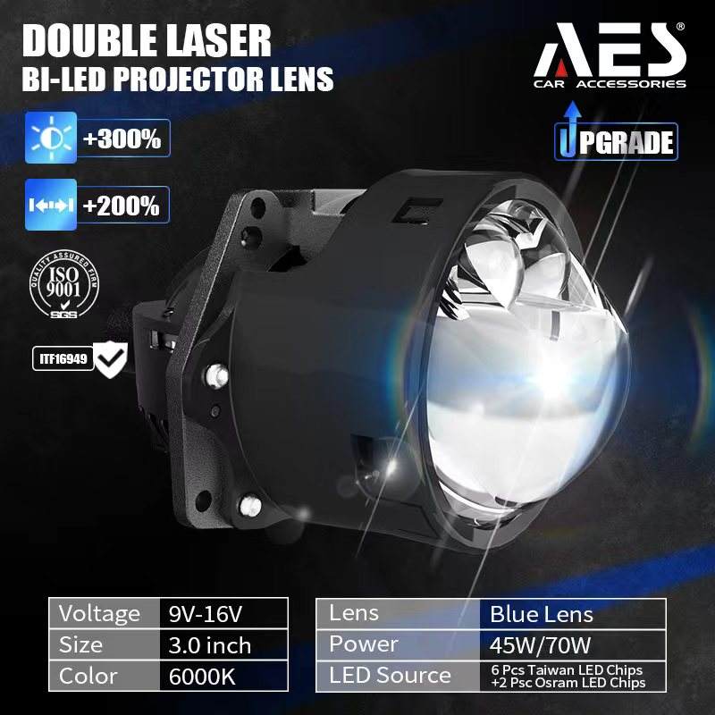 AES เลเซอร์คู่ลำแสงสูง70W 3 "UX-2สองเลนส์โปรเจคเตอร์ LED สำหรับ9006 H1 H4ไฟหน้ารถ H7