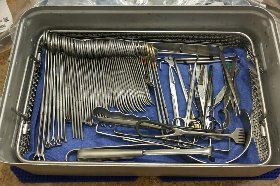 ชุดเครื่องมือผ่าตัดขนาดเล็ก ประกอบด้วยกรรไกร ที่จับเข็ม คีม คีมตัด และอื่นๆ