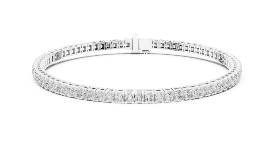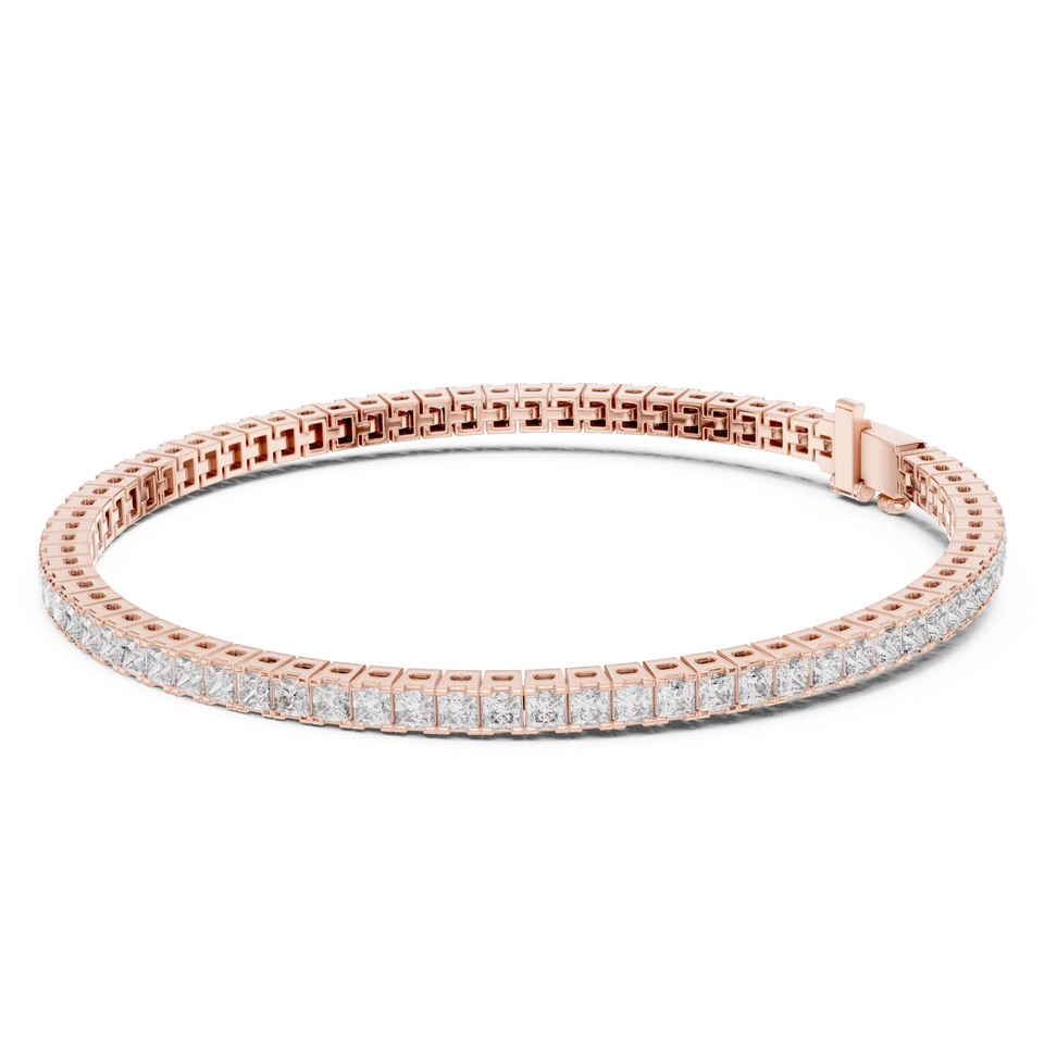 สร้อยข้อมือเทนนิสหรูหราทรงเจ้าหญิงเคลือบโรเดียม ราคาไม่แพง ผลิตในห้องปฏิบัติการ พร้อมตัวล็อคแบบซ่อน ชุดทองคำแท้ 18K สีโรสโกลด์ เหมาะสำหรับเป็นของขวัญในงานปาร์ตี้
