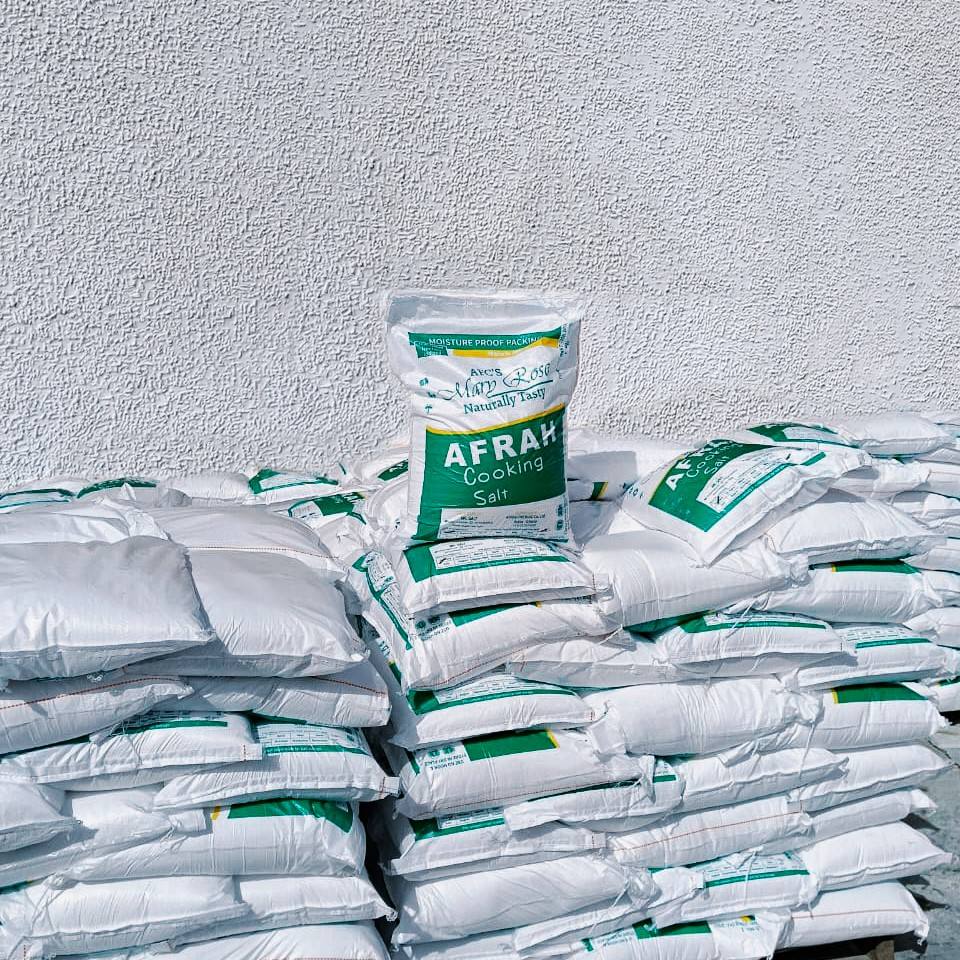 เกลือทะเลบริสุทธิ์ AFRAH สีขาว 99.8% ความบริสุทธิ์สูง เกรดอาหาร ได้รับการรับรองมาตรฐาน HACCP เกลือบริโภคแบบผง ผลิตจากอียิปต์ น้ำหนัก 25 กก.