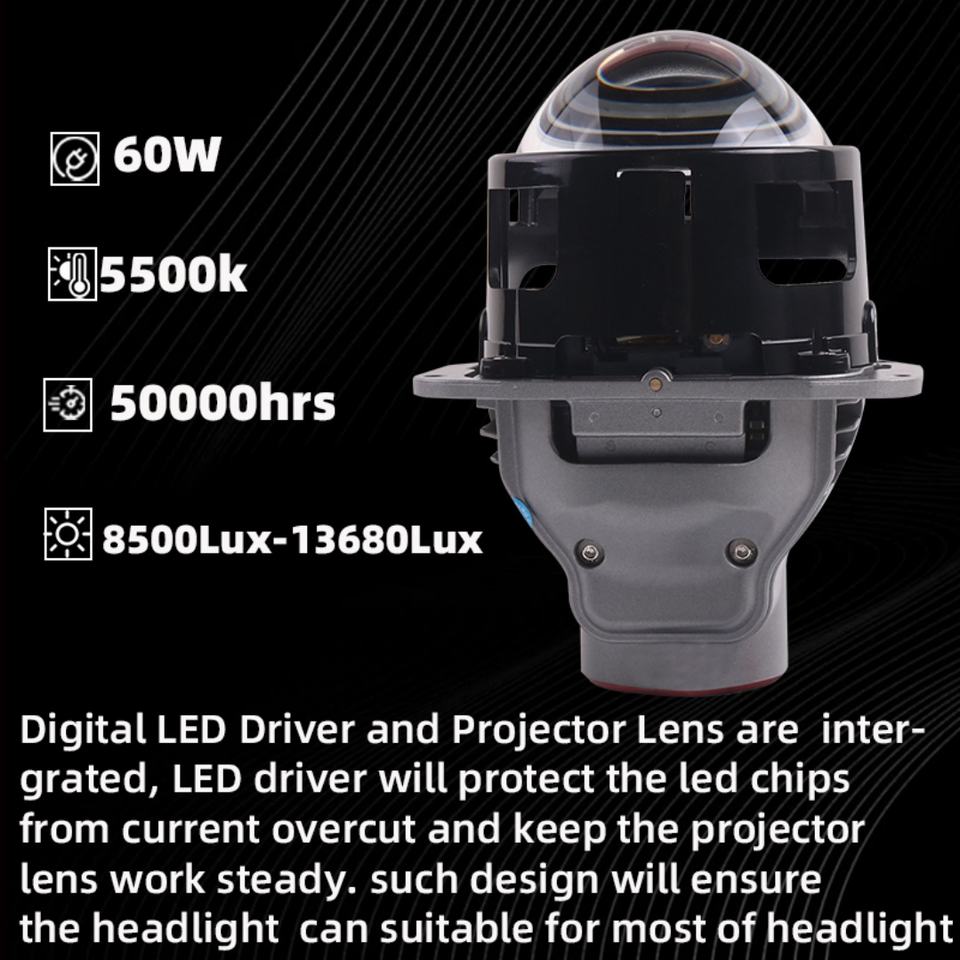 AFS SANVI 60W 6000K ไฟหน้า LED ซูเปอร์ไบรท์3นิ้ว Bi LED โปรเจคเตอร์เลนส์ไฟหน้า6000K สี
