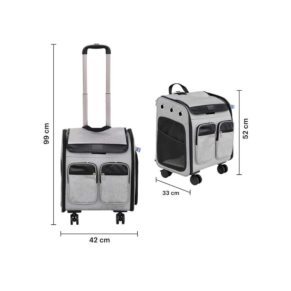 กระเป๋าเดินทางผ้าอ็อกซ์ฟอร์ดทำจากโพลีเอสเตอร์มีล้อและพับได้ลายสัตว์สำหรับสุนัขและแมวพันธุ์เล็ก