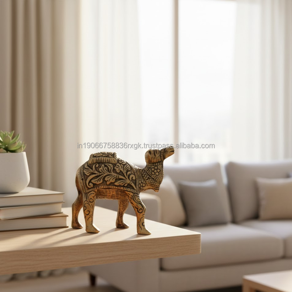 AG Elements Handcrafted Aluminum Camel Pair Antique Brass Finish Art Deco Design Decorative Birthday Tabletop Set 14x12x5 cm