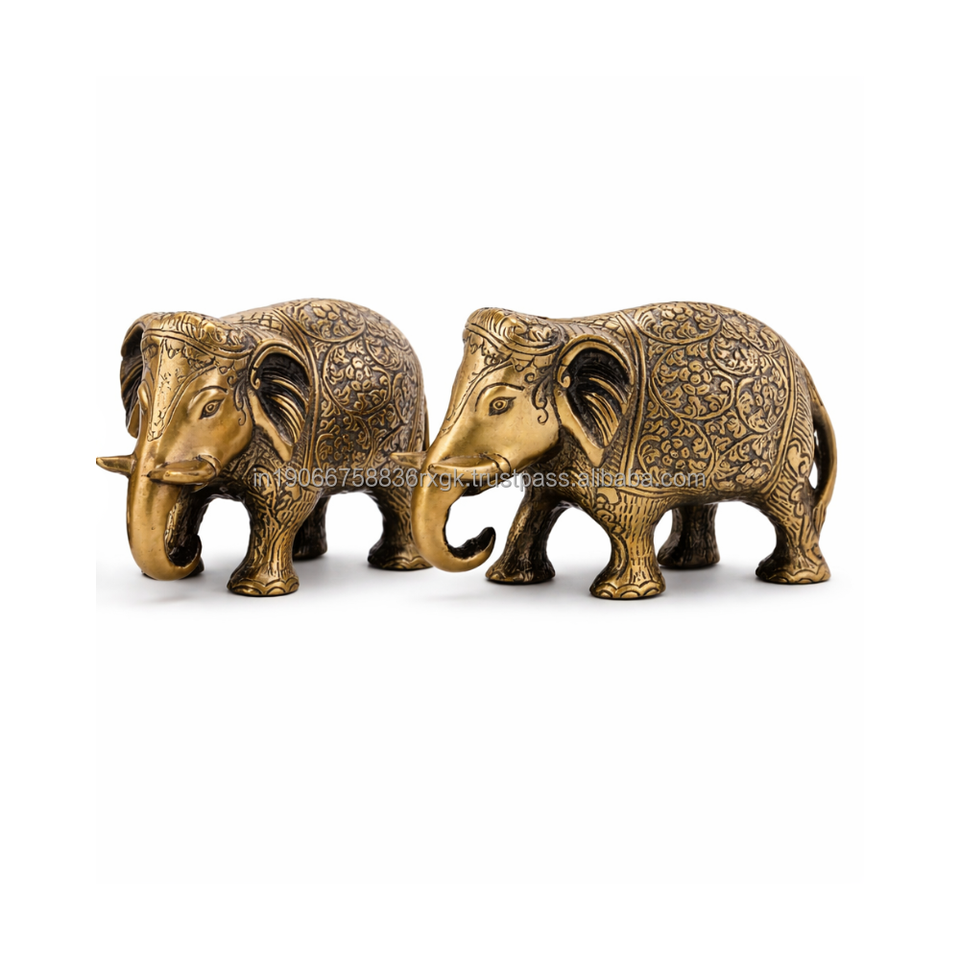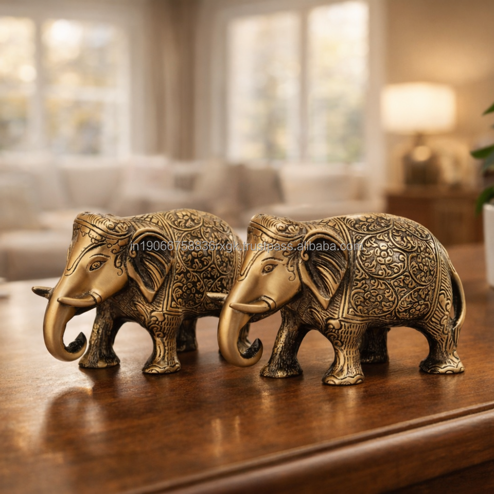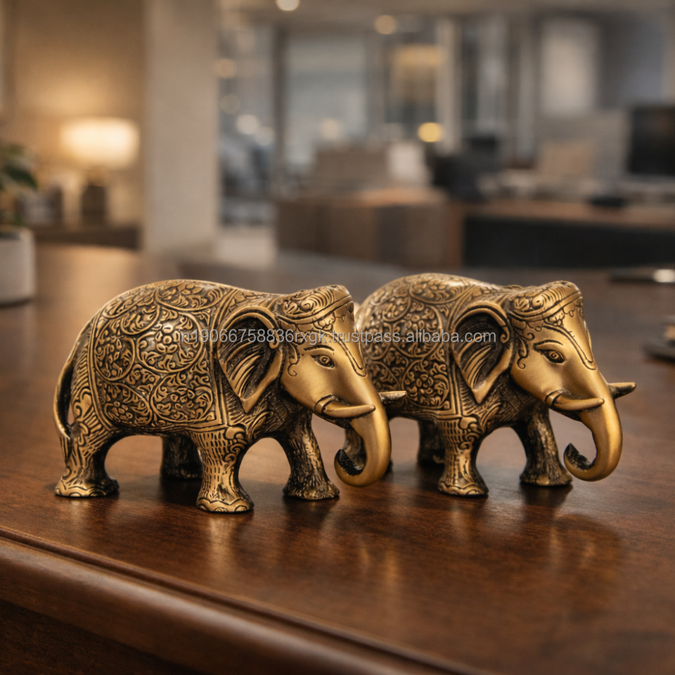 ชุดรูปปั้นช้างอะลูมิเนียมทำมือ AG Elements ตกแต่งด้วยทองเหลืองโบราณ ดีไซน์แบบอาร์ตเดโค ชุด 2 ชิ้น สำหรับตกแต่งโต๊ะวันเกิด