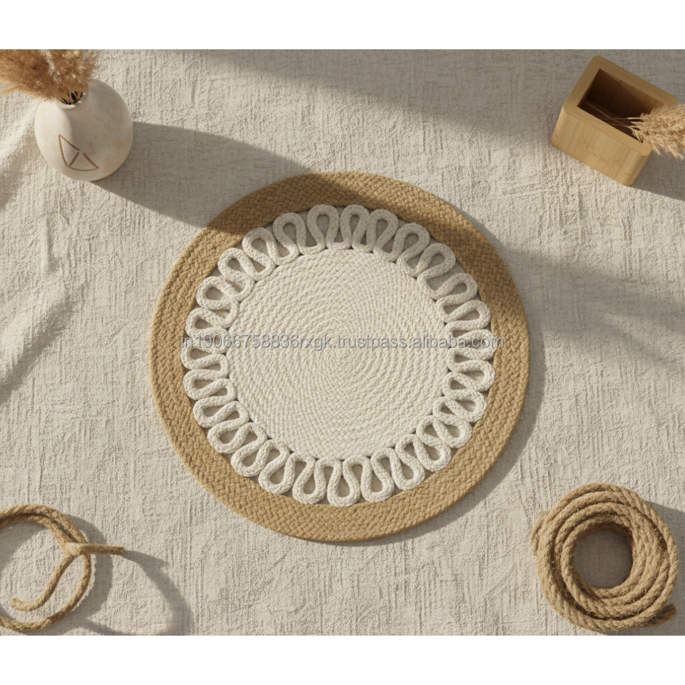 แผ่นรองจาน AG Elements Premium Natural Jute ขนาด 14 นิ้ว ทอมือ ดีไซน์ร่วมสมัย เป็นมิตรกับสิ่งแวดล้อม กันลื่น ทนความร้อน หนา 2 มม.