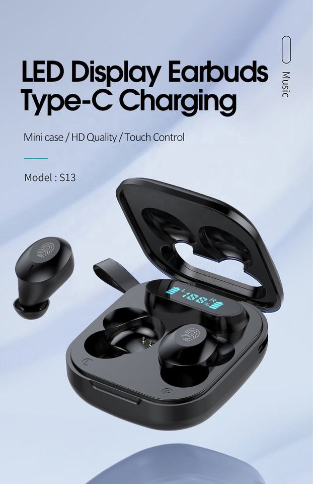 AGETUNR หูฟังไร้สาย S13 Led Display TWS,หูฟังกีฬาแบบสัมผัสควบคุมด้วยระบบบลูทูธ5.1เอียร์บัด DSP ตัดเสียงรบกวนกันน้ำหูฟัง True