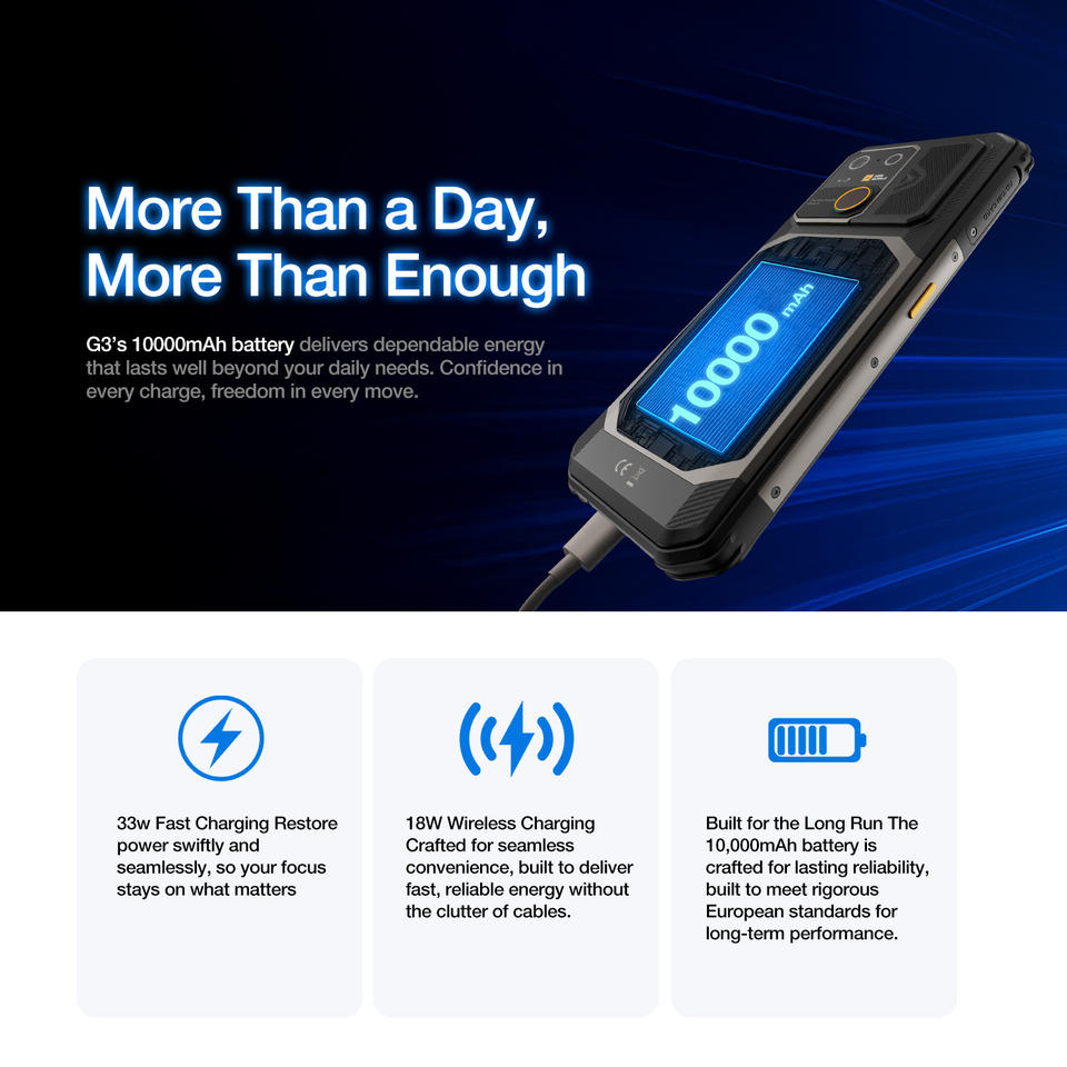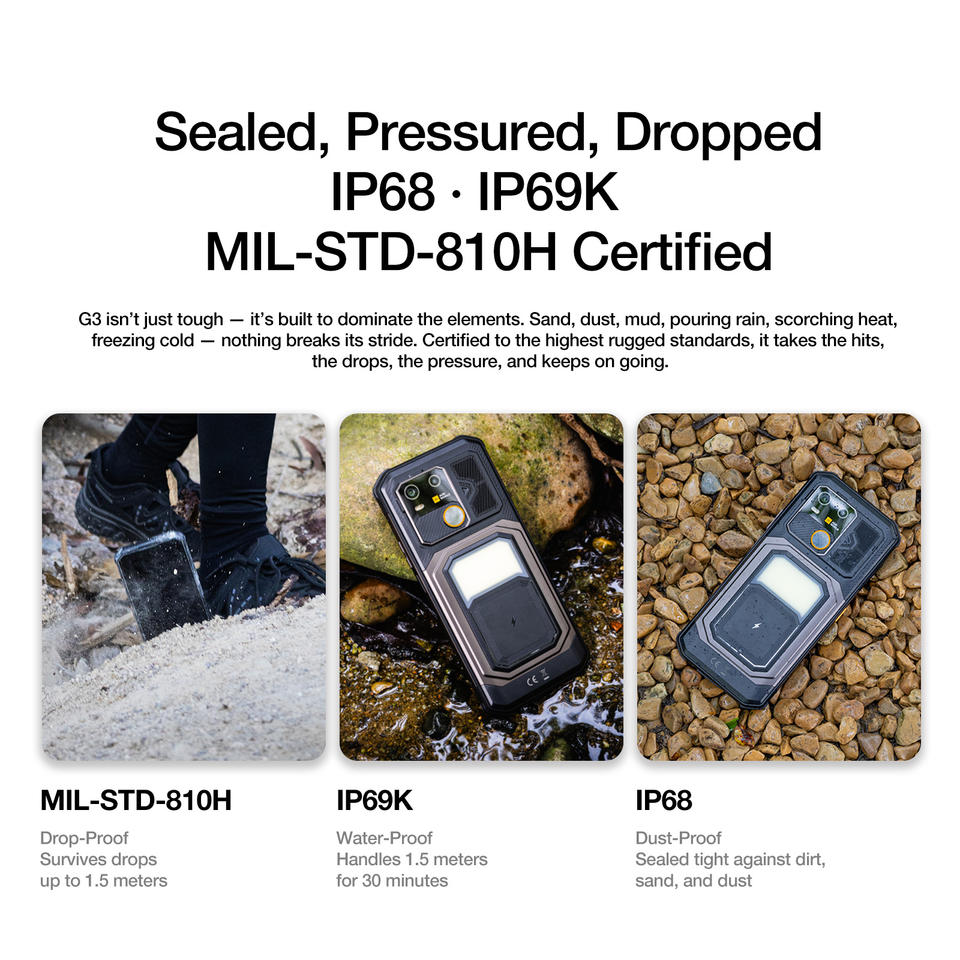 สมาร์ทโฟน AGM G3 5G 3-proof รุ่น 12GB+512GB ROM ระบบ Android 15 รองรับการชาร์จไร้สาย แบตเตอรี่ 10000mAh พร้อมไฟฉายสำหรับแคมป์ปิ้ง กันน้ำ หน้าจอ 6.72 นิ้ว โทรศัพท์ที่ทนทาน
