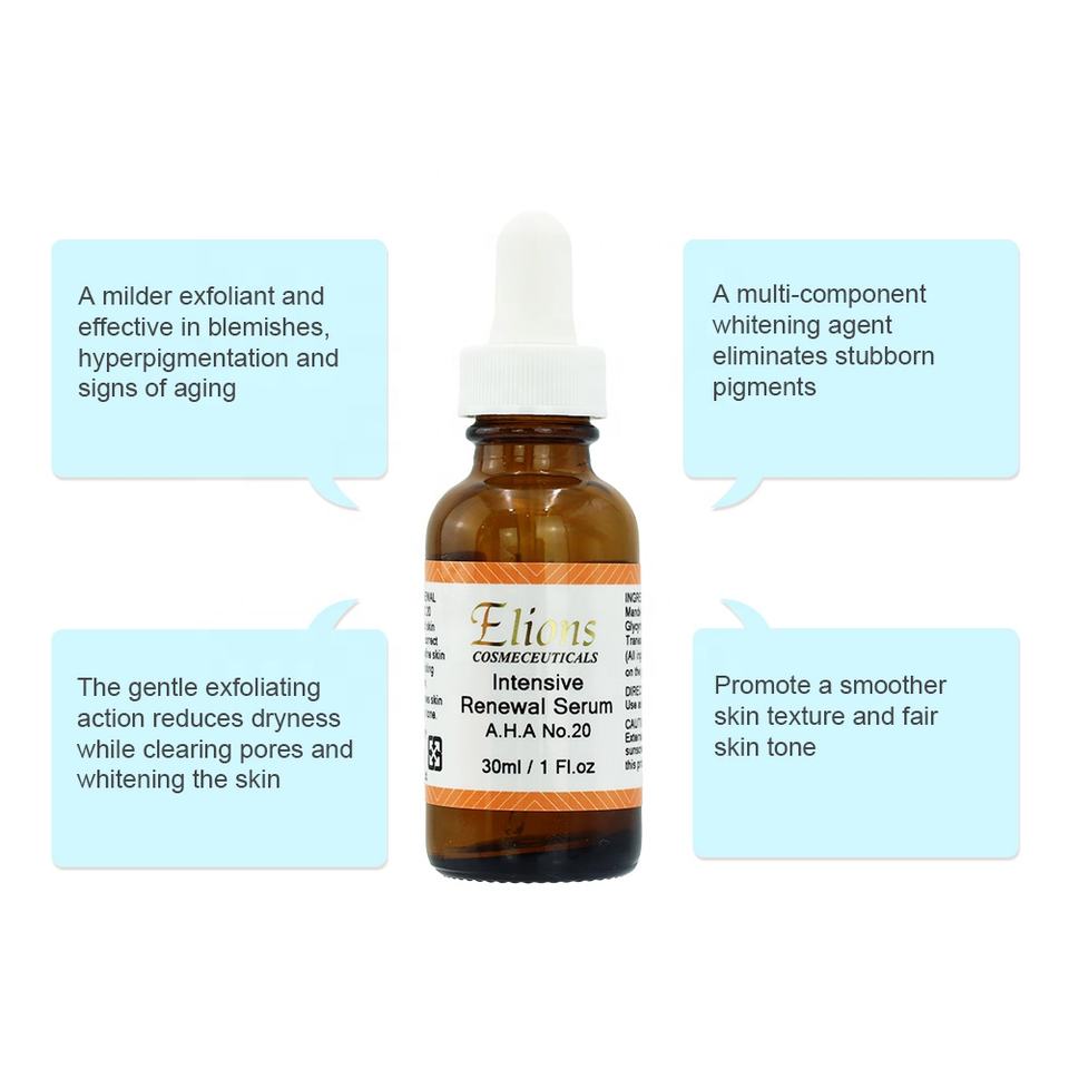 ชื่อผลิตภัณฑ์:20% แมนดี้แอซิดและทรานเน็กซามิกแอซิด a.h.a เซรั่มผลัดผิวอย่างเข้มข้น
