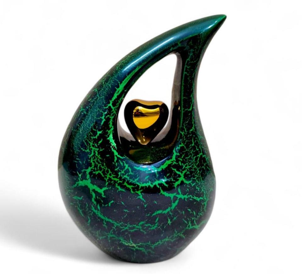 โกศบรรจุอัฐิรูปหัวใจทรงหยดน้ำ สีเขียวโบราณ ตกแต่งสีสันสดใส สำหรับผู้ใหญ่ ขนาด 200 คิวบิกอินช์ เป็นมิตรกับสิ่งแวดล้อม ทนทาน เหมาะสำหรับงานศพ