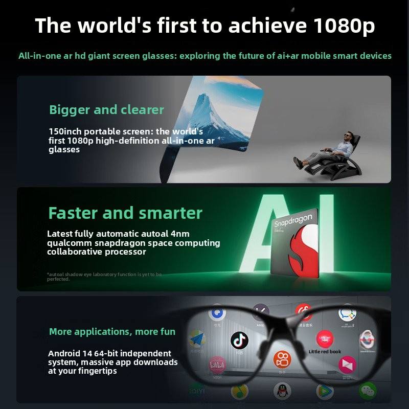 Ai AR แว่นตาอัจฉริยะ inmo 16MP AIR3 1080P กล้อง OLED เปิด API SDK แอนดรอยด์อิสระ600nits GPS ชาร์จด้วยแม่เหล็ก